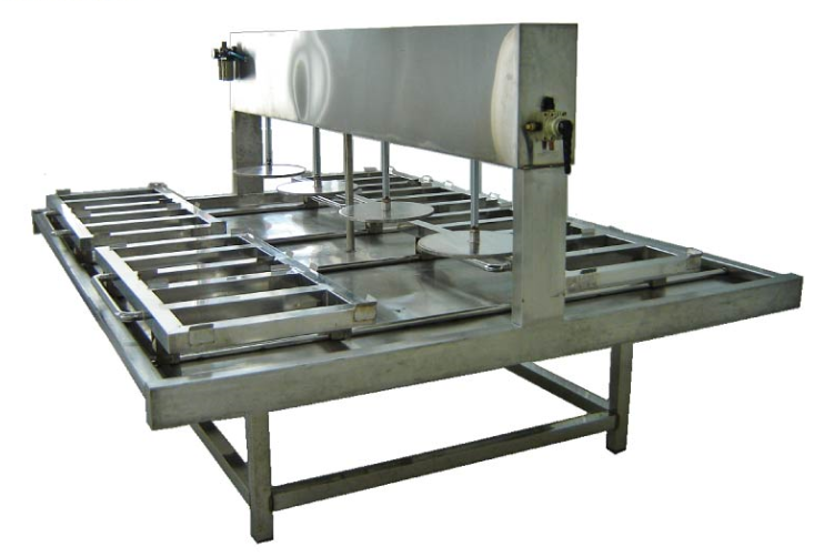 設備簡介:用于豆腐生產線。利用氣泵供給壓縮空氣推動圓形氣缸中的柱塞壓制豆腐。