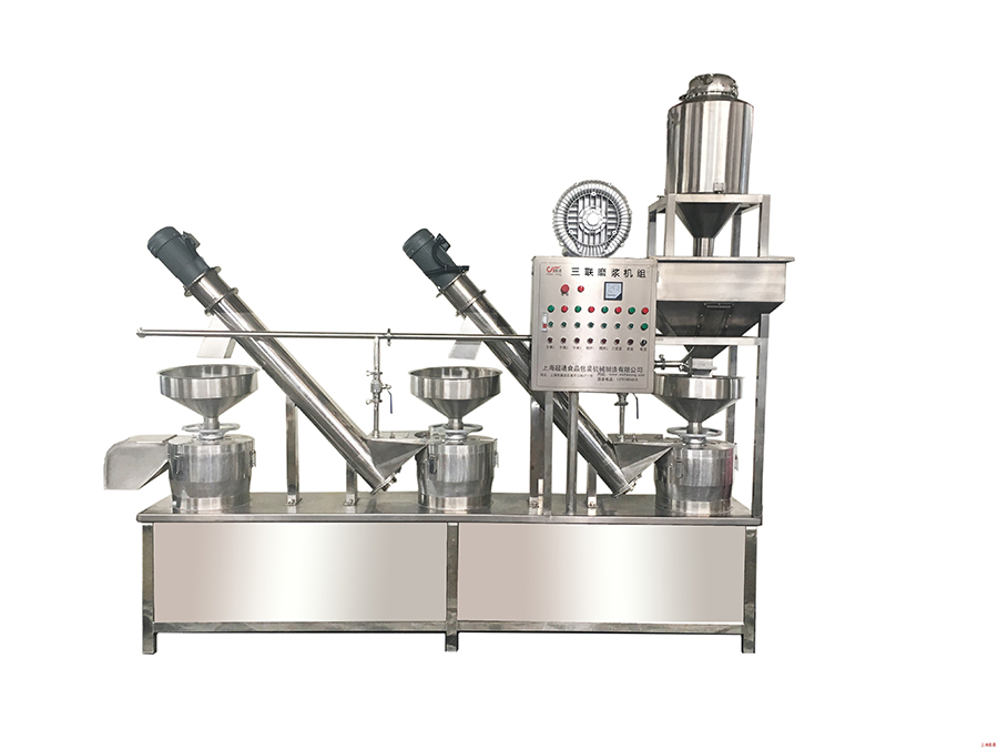 該設備具有自動制漿、混合、分離、輸漿功能一次性完成,在生產過程中,精確的控制水、豆、漿水濃度,一遍漿和二遍漿做為生產用漿,三遍漿水供磨豆和一遍攪渣使用,二遍攪渣使用清水,輕松磨制高濃度漿,提取率高達98%。本機組可連續(xù)不間斷出漿,無需其他調節(jié),為企業(yè)節(jié)約人力資源,提高了產品的穩(wěn)定性。設備低耗能、循環(huán)自清洗,實用性高,適合中小型加工廠使用。